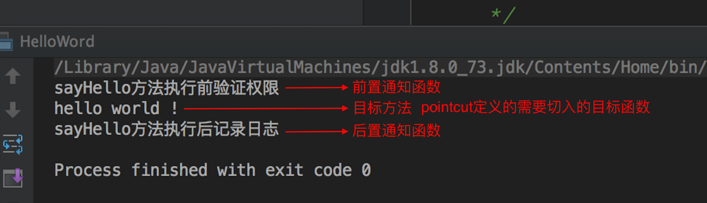 System.out.println("sayHello方法执行后记录日志");