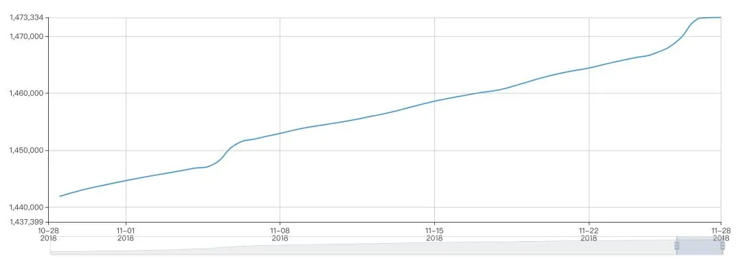 截止至11月27日间地址数总量为1472875个,在一个月期间增长32256个,平均每日增长1112个。