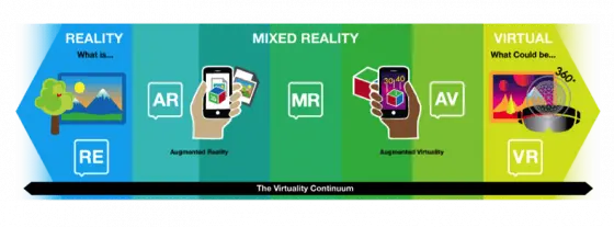 就跨越虚实的科技而言,这里我们来谈谈时下热门的「扩增实境」(Augmented Reality,AR)技术,所谓扩增实境,是一种将数字讯息或是计算机产生的信息,实时覆盖在真实空间当中的一种技术,一般而言,扩增实境可以扩增人的「五感」,但现今大多数的扩增实境技术仅用来强化视觉感受。这里提到的所谓「实时覆盖信息」的手法,可以是直接让观众直接用身体感官感受的,也可以是间接透过装置进行体验的。举凡近两年席卷全球的热门游戏 Pokémon GO(即便过去AR功能总是被玩家关掉),以及最新的 iOS 11 ARKit 技术应用,就是家喻户晓扩增实境的典型运用。若以 1994 年 Milgram 等人,所提出的现实-虚拟连续系统(Reality-Virtuality Continuum)(下图),则可以更清楚地知道,扩增实境(AR)是较为倾向以「真实环境」做为呈现基底。这与时下热门的「虚拟现实」(Virtual Reality, VR)不同,扩增实境技术主要试图将虚拟对象嵌入现实当中,因此「真实空间」在扩增实境当中被视为一项非常重要的元素。总体而言,扩增实境可视为介于全真实环境与全虚拟环境的一种「混合物」或是「中间地带」。这是当代社会一个非常奇特的现象,透过数字科技,我们把想象与真实介接在一起,并且穿梭往来两地进行工作、娱乐与生活。部分信息参考来源自:SBF预测运势 mitsp.com/