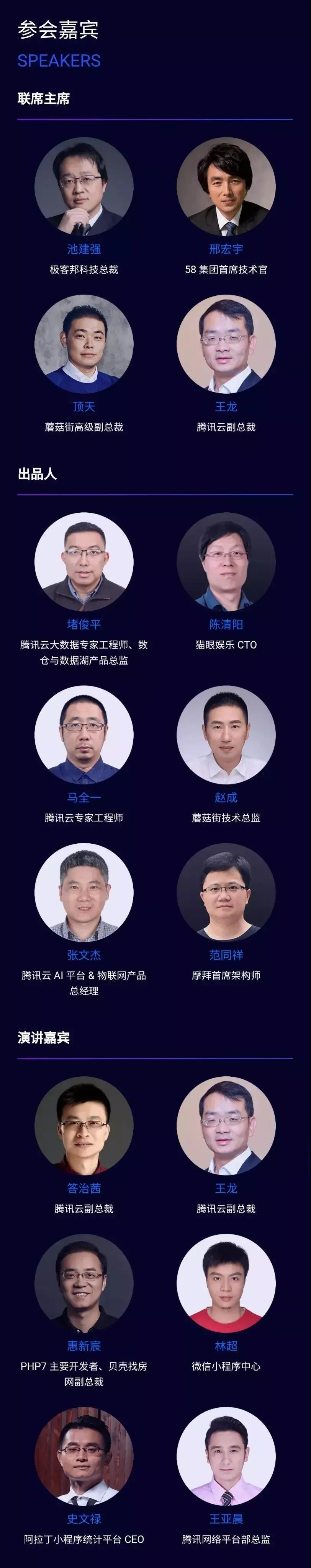 下午大会的小程序分论坛由「微信极客 WeGeek」出品。我们将邀请 5 位有分量的嘉宾,希望能以微信小程序开发技术与实践经验分享,来为开发者们「充电」。