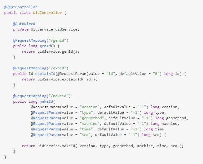 我们针对上述 UidService中提供的三个工具接口来各自编写一个测试接口: