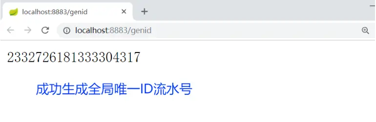 首先我们用浏览器调用接口 genid,来返回生成的全局唯一 ID流水号,一切都是那么的简单优雅: