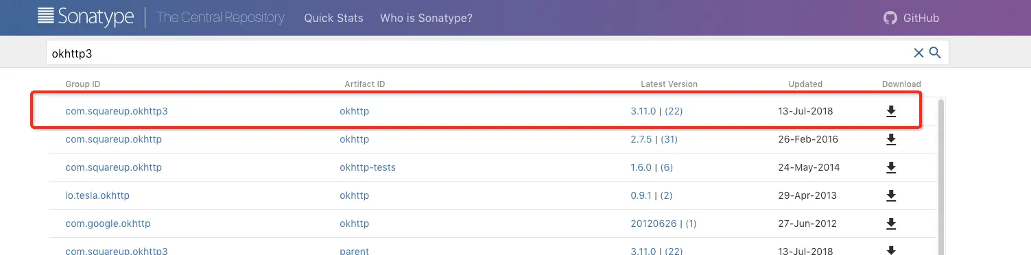 Maven上搜索Okhttp版本