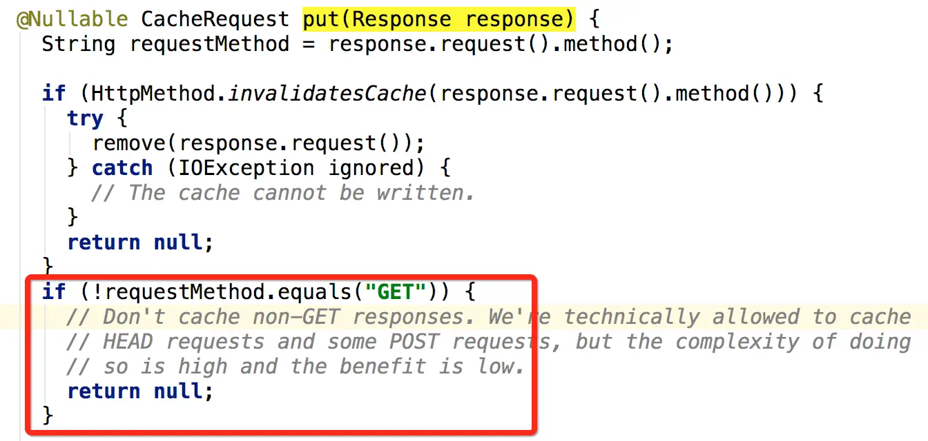 Cache:网络缓存,okhttp默认只能设置缓存GET请求,不缓存POST请求,毕竟POST请求很多都是交互的,缓存下来也没有什么意义。