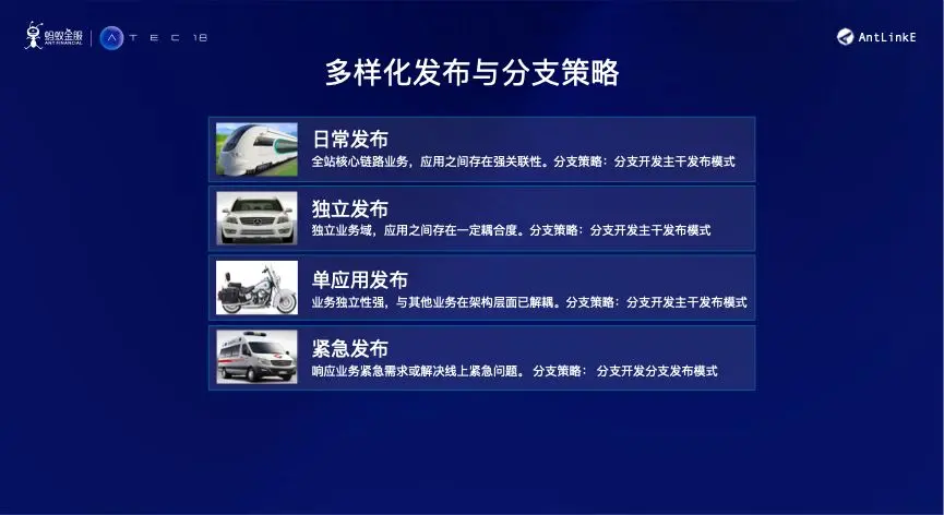 关于分支模式和发布策略,蚂蚁主要有四种玩法。