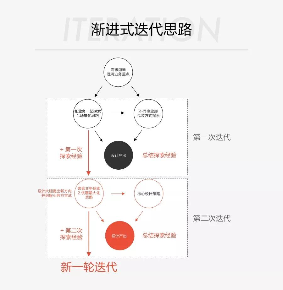 针对一种新的业务形态,如果没有明确的方向,可以通过迭代的思路探索新方向:不断试验、总结、再调整、再总结,以此反复。在尝试过程中,设计方向将逐渐明晰。