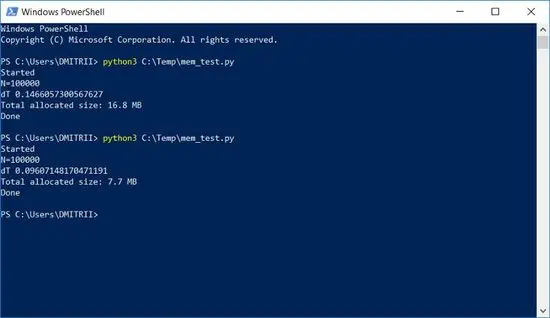 我们确认:是的,确实很重要,get_size (d1)返回…64字节,而不是460字节,即少7倍。另外,创建对象的速度要快20%(请参阅本文的第一个屏幕截图)。