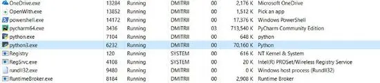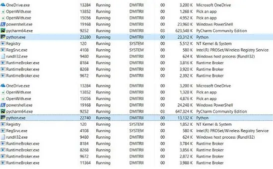 今天的最后一个测试。有趣的是整个程序需要多少内存。添加一个无限循环的程序,以便它不结束,看看Windows任务管理器中的内存消耗。