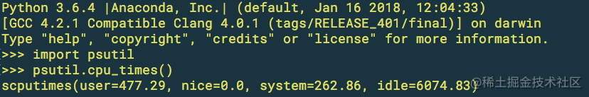 可以通过 cpu_times 模块对 cpu 资源进行查看,比如: