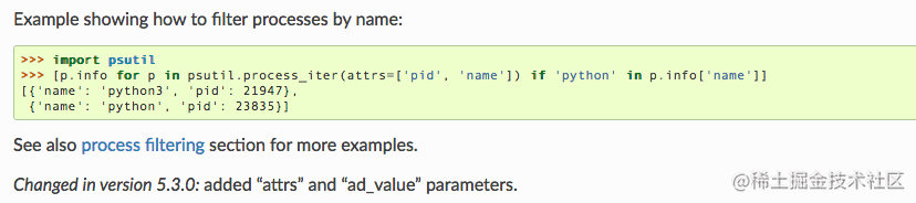 我们可以一边翻阅 psutil 的官方文档,一边编写代码,这样就能够更快的学习。