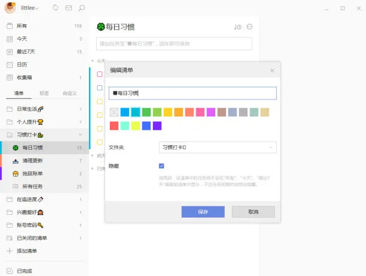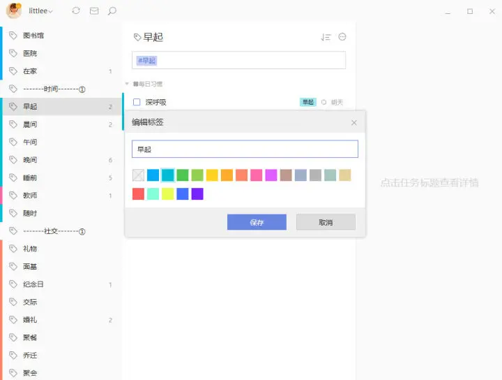 标签的颜色也是和清单一样可以选择的,这里也不多赘述,只要在那个清单内的标签颜色从属于清单颜色。保持同一性就够了。