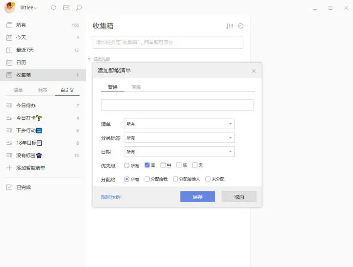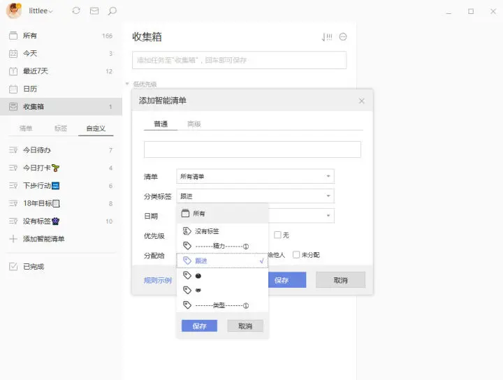 有时候一个任务它的属性,并不是很明确。他可能同属于这个清单,有可能属于那个清单,在这种情况下你就可以使用标签和清单的筛选,使这个任务在智能清单里显示出来。而智能清单绝对是帮你理清头绪的最佳工具。