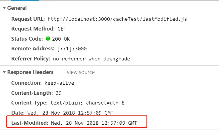 Last-Modified的一次请求时,服务器返回的响应头里面包含缓存标识Last-Modified