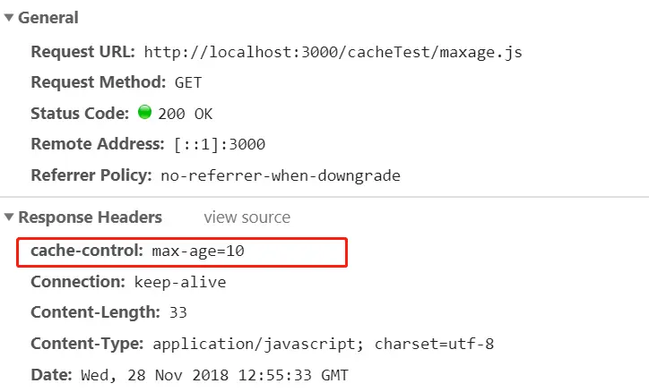 max-gae 第一次请求服务器时,响应头会返回一个 max-age,是文件多少时间后过期。 如下图所示:
