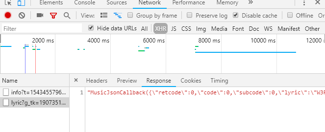 部分qq音乐的api接口不能直接通过jsonp访问,需要通过官方的代理才能获取,如:歌词,推荐歌单等,本例是获取歌词