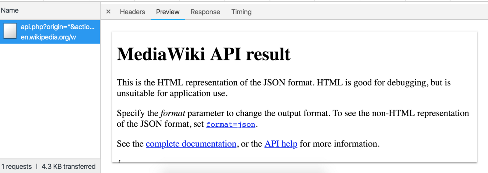 That link points to a default HTML page. We didn’t get JSON back because we didn’t specify a search topic.