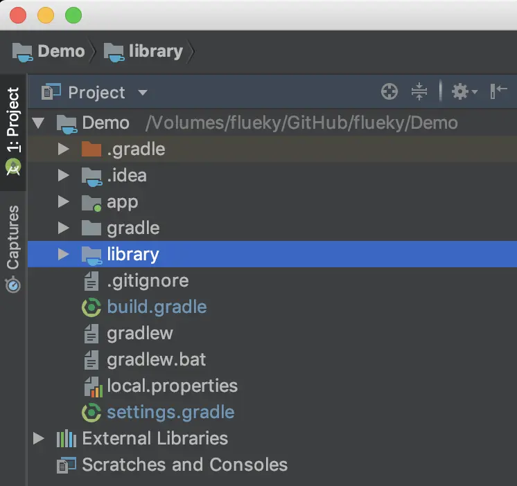 新建library文件夹,并在settings.gradle文件中添加include ':library',构建后如下,注意library文件夹的标志。