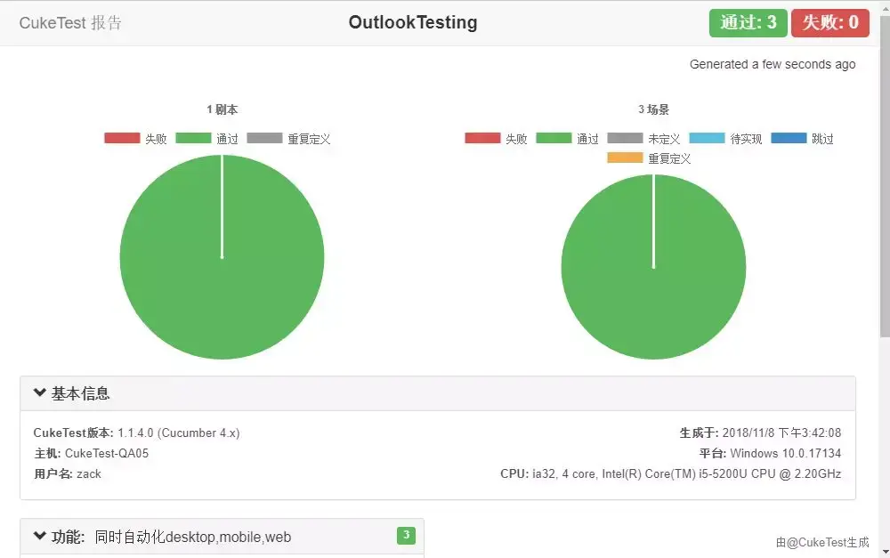 依托强大的Node.js生态和大量的开源库。使用CukeTest配合开源的工具可以完成各类应用的自动化。既快速又免费,有兴趣的可以尝试一下噢。