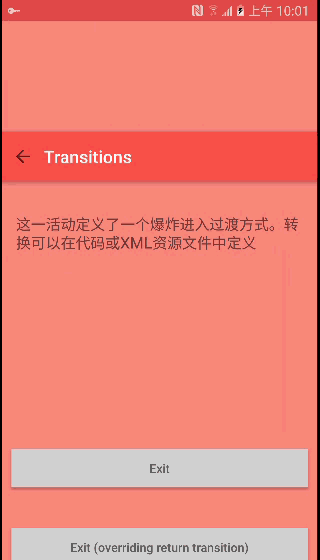 Android 5.0(API 级别 21)支持的进入与退出转换有三个:
