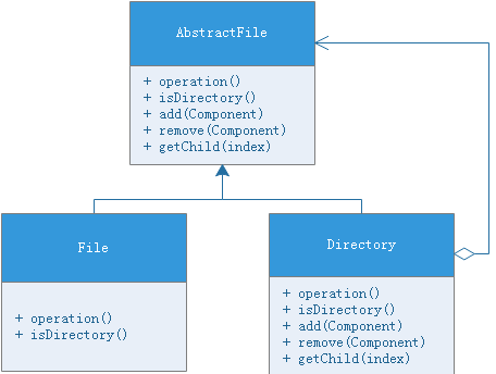 熟悉的windows文件目录结构就可以看出是组合模式中的树状图。节点可以是文件(Leaf),也可以是目录(Compostite),可以定义出共同的抽象组件(Component)提供接口: open、delete等相关文件操作。
