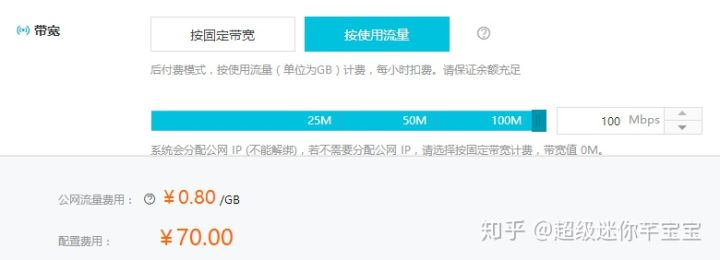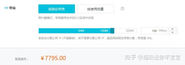 举个例子:同样一台ECS,在同为百兆带宽的情况下,每月的费用如下图: