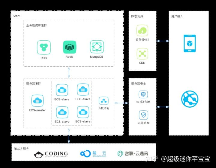 当然,能这样的做的原因也是因为在这个架构中,ECS仅处理业务逻辑,几乎不存储文件资源。大部分静态资源,如视频图片等,都是存储在OSS上。如果存放静态资源,比如下视频或图片什么的,流量一多那就很亏了。
