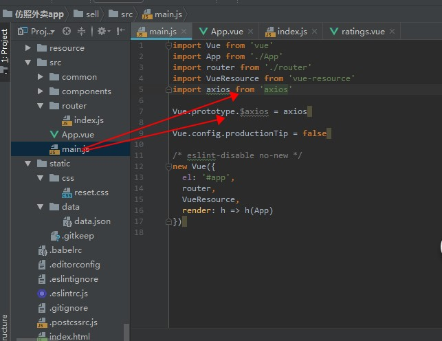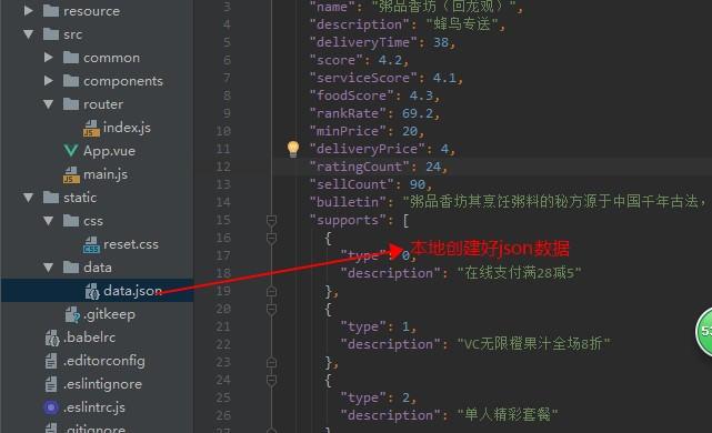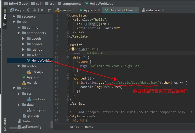 先跟后台对接好,创建好json数据格式,然后在需要入口文件处引入