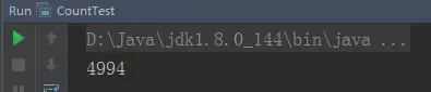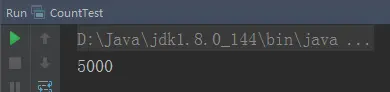 所以,在多线程环境下,有可能线程A将count读取到本地内存中,此时其他线程可能已经将count增大了很多,线程A依然对过期的本地缓存count进行自加,重新写到主存中,最终导致了count的结果不合预期,而是小于5000。