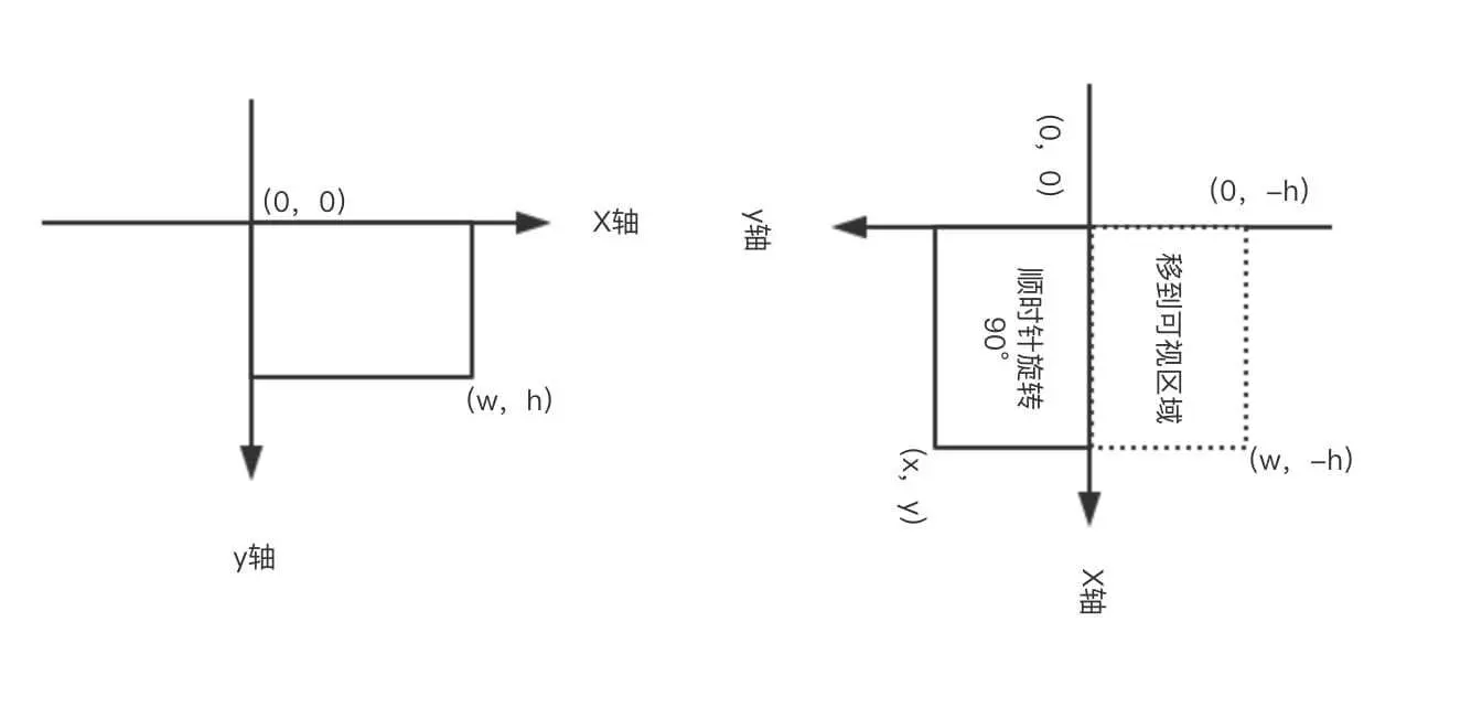 画布旋转之后,drawImage()根据画布的位置进行调整,如上图所示: