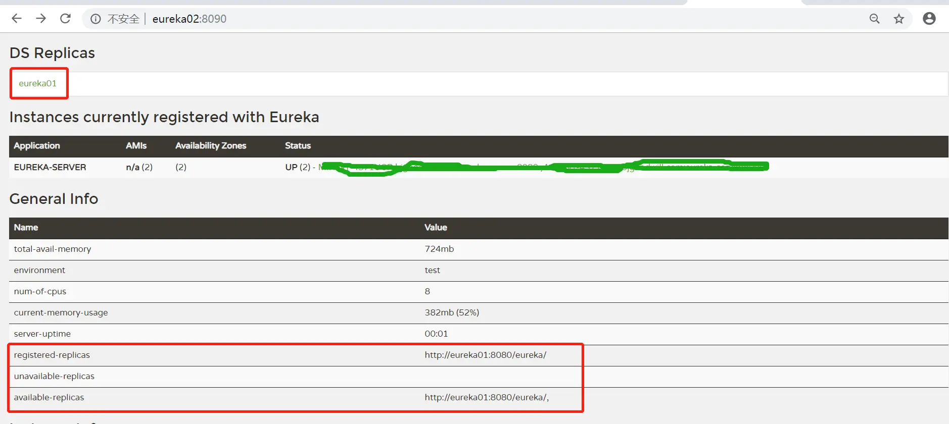登陆控制台(http://eureka01:8080或http://eureka02:8090)如图: