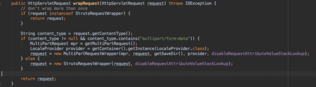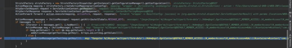 漏洞产生的类还是JakartaMultiPartRequest类,当content-type报错的时候会执行ognl表达式,看看为什么会这样。