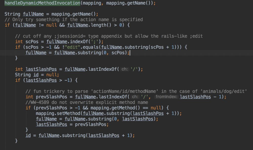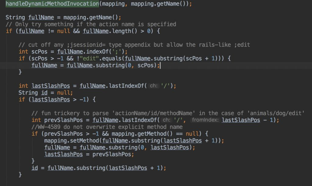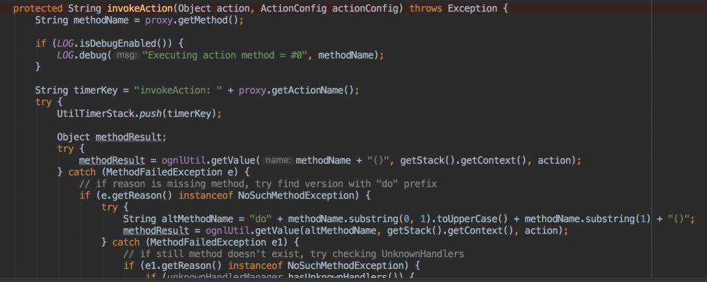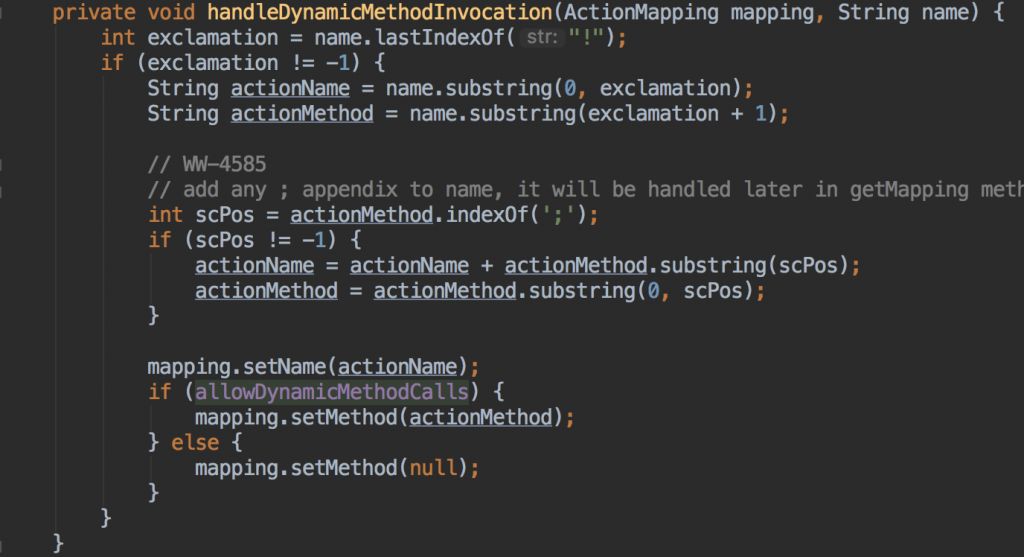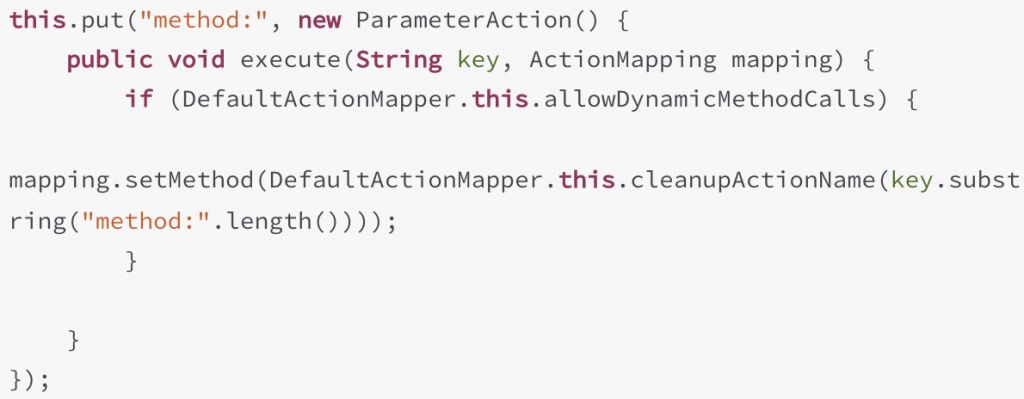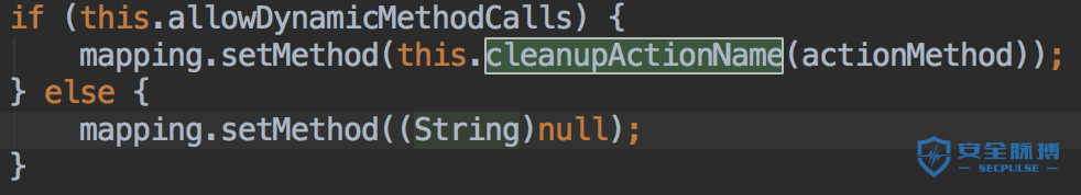官方针对这个漏洞在DefaultActionMapper类增加了一个cleanupActionName方法去处理actionname的恶意代码,并返回安全的actionname。