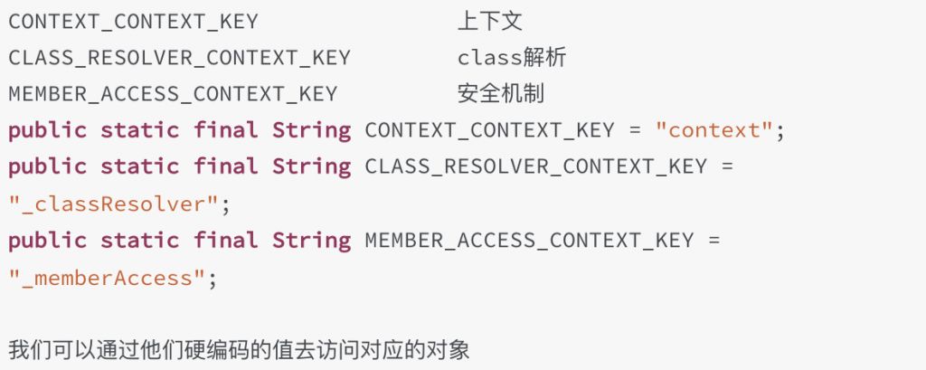 它可以利用ognlcontext的硬编码直接访问上下文,但是在2.3.34版本删除了这三个属性