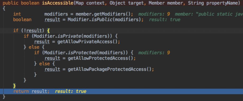 context.getMemberAccess().isAccessible(context, target, m, propertyName)