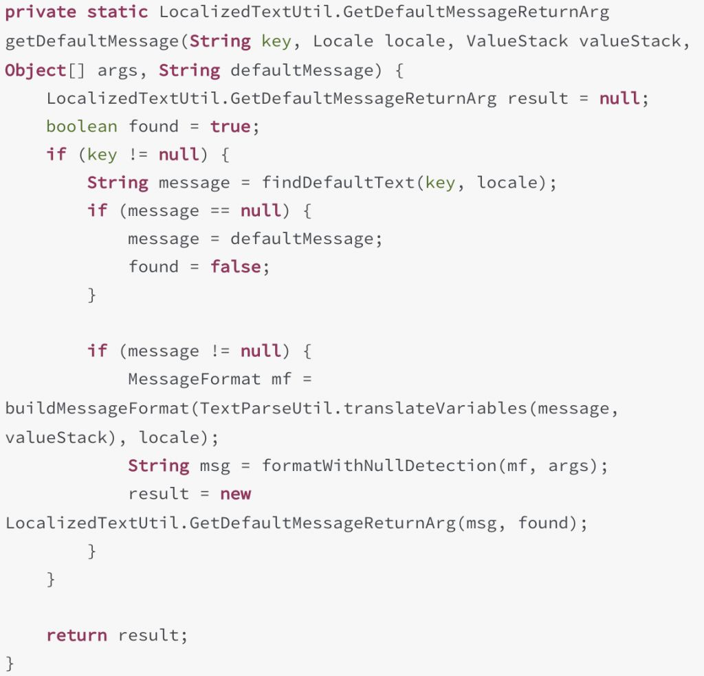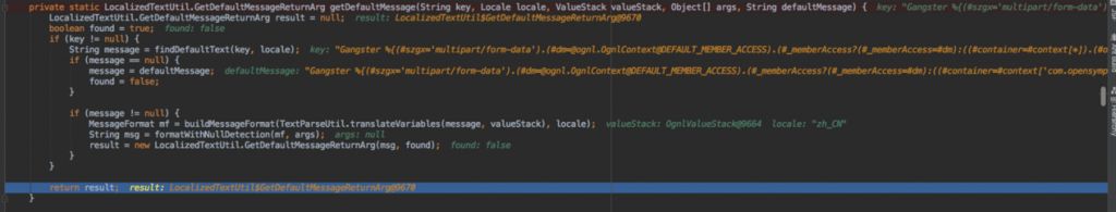 代码最终进入getdefaultmessage的translateVariables方法执行ognl表达式