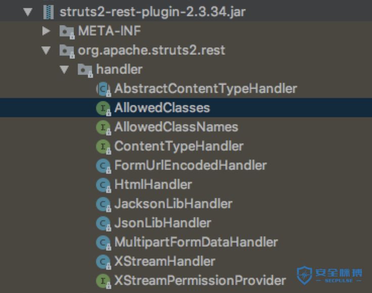 查看struts2-rest-plugin-2.3.33.jar的struts-plugin.xml发现拦截器ContentTypeInterceptor。