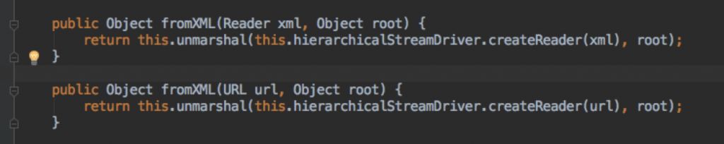根据这个漏洞,我们主要查看一下xstreamhandler类,这类主要是是将xml转换成对象,对象转换成xml的,也就是比较专业的词汇叫“marshal“和”“unmarshal”。