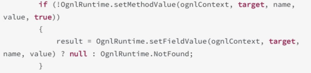 因为setAllowStaticMethodAccess方法被删掉,但是ognlcontext的上下文属性还在,所以可以通过_memberAccess去获取AllowStaticMethodAccess的值并通过setAccessible方法设置为true,从而达到任意代码执行的目的。