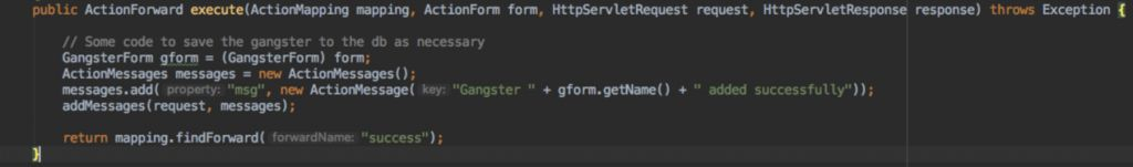 入口点在struts1action的execute方法,struts1action的execute方法是调用savegangsteraction类的execute方法实现的。