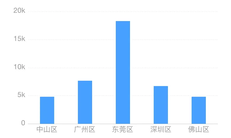 比较条目较少时,如5个地区收件量的对比,可选用柱状图表示。