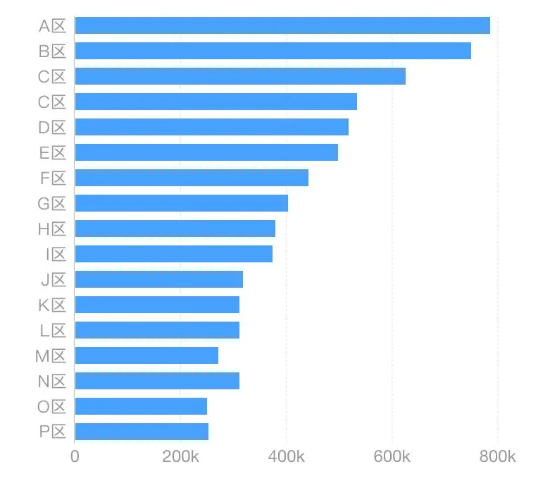 当条目较多,如大于 12 条,移动端上的柱状图会显得拥挤不堪,更适合用条形图。一般数据条目不超过 30 条,否则易带来视觉和记忆负担。