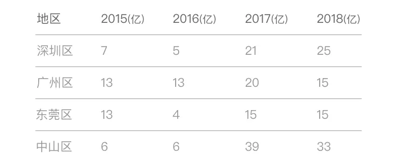 接下来,看看数值构成随时间变化的案例:第一大区(包含四个重点地区)近四年收入构成的趋势要如何可视化?自己想一想,再下滑看推荐方案。