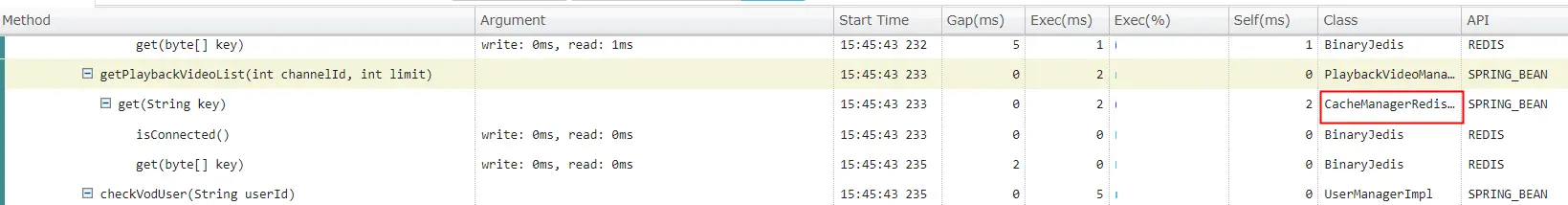 上图中两个红框中的数据(接近10s),相隔大概30分钟就发生,16:20左右,系统撑不住服务出现异常不可用,怀着好奇的心态,追查方法调用的栈,如下图所示: