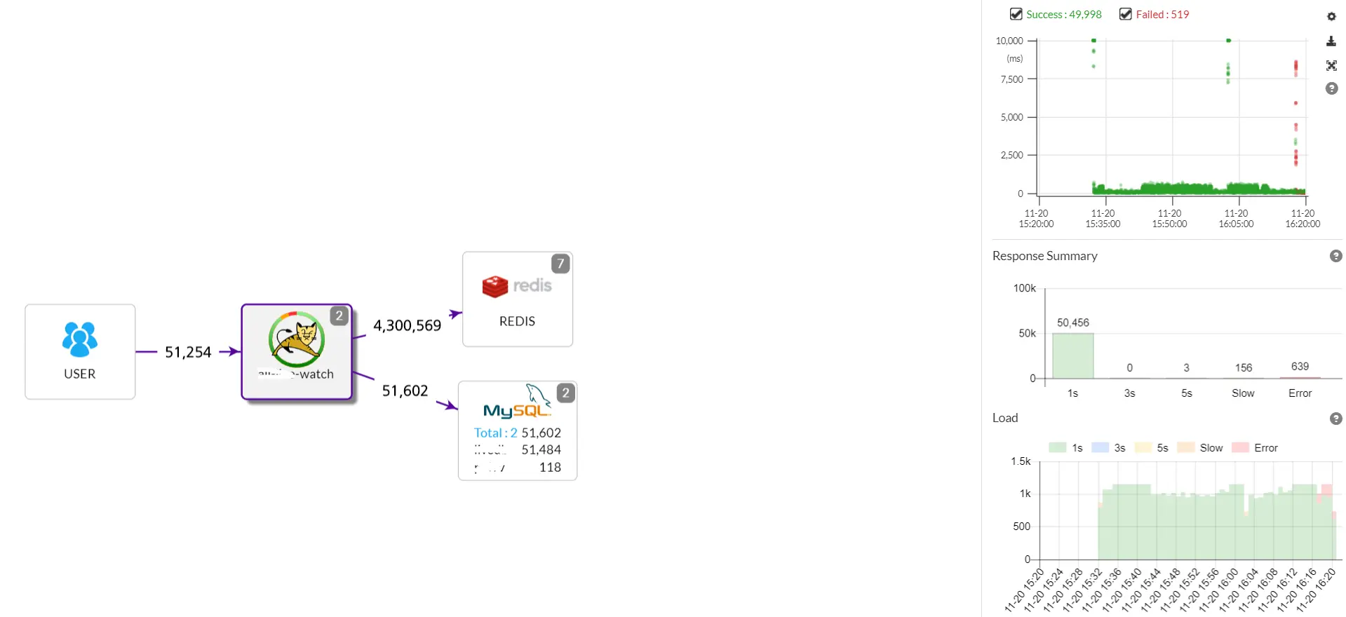 通过对某直播观看页面进行高并发压测,在APM(Pinpoint)监控中发现一个有趣的地方: