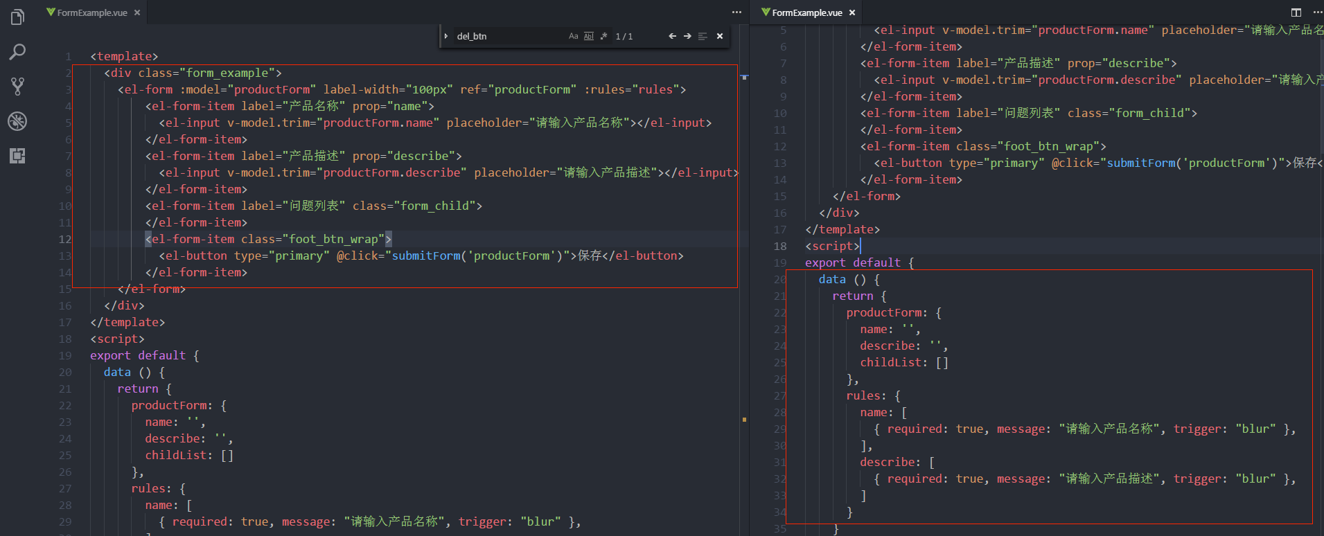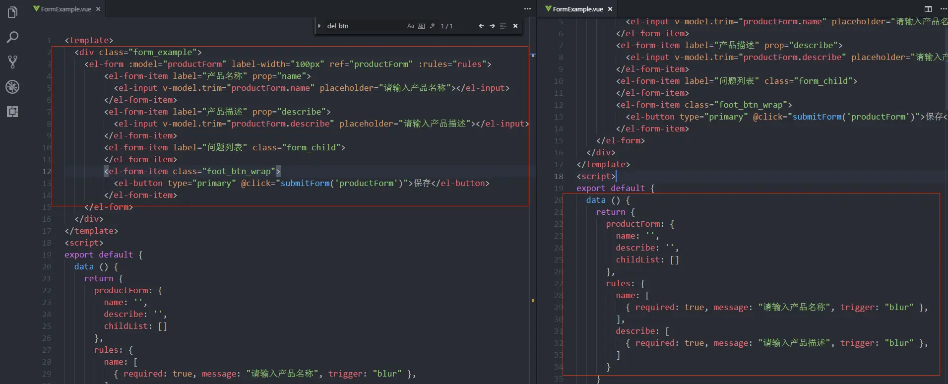 - 到此页面逻辑已经基本实现。现在我们来给表单添加验证规则,添加submitForm方法。