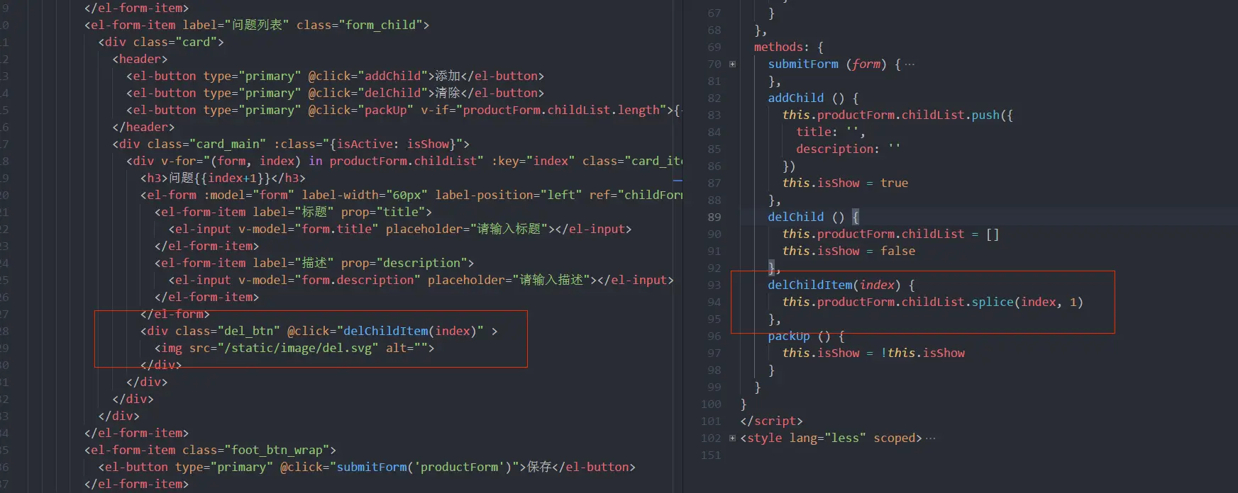 - 给每个问题表单的删除添加点击事件: