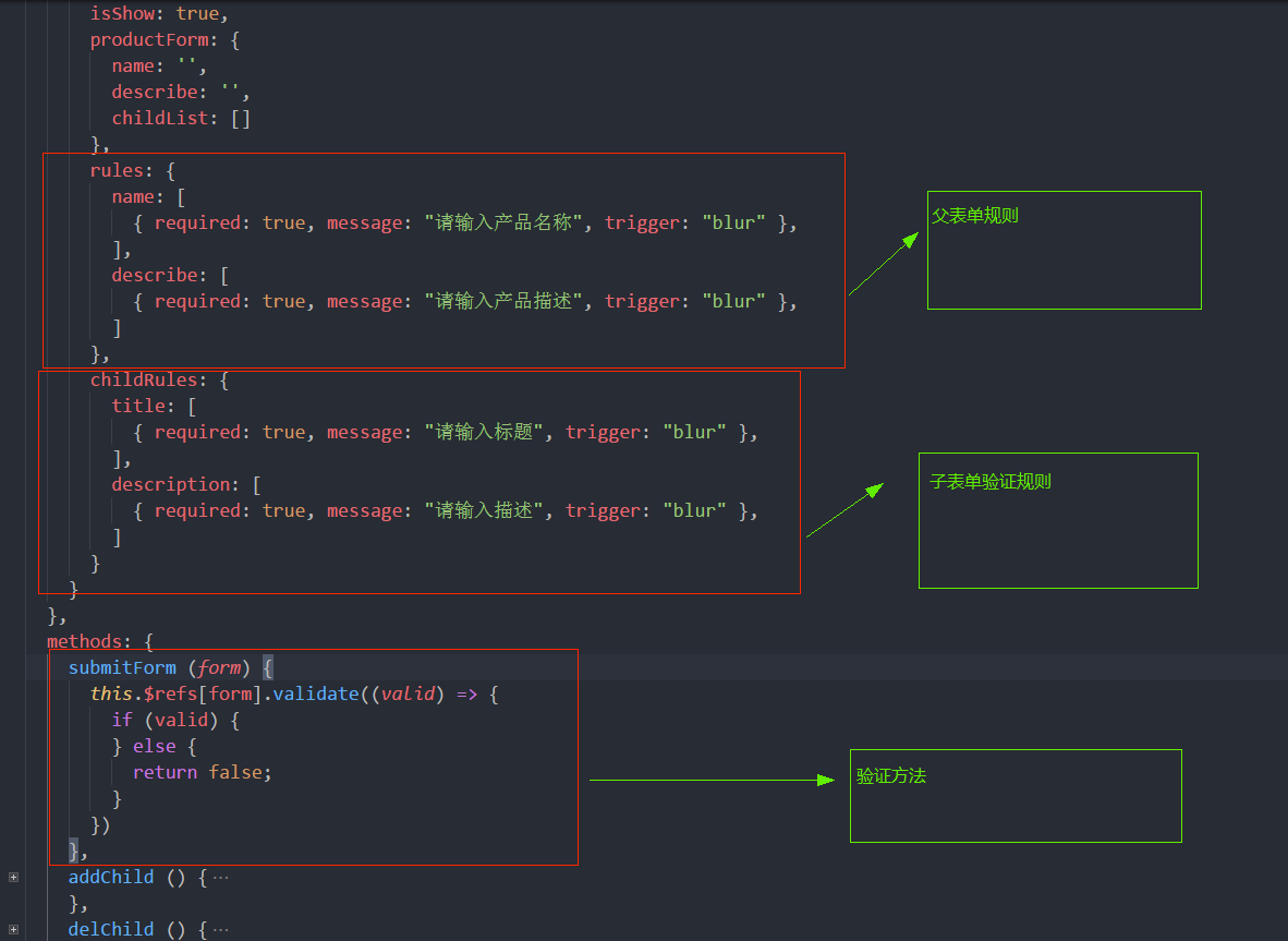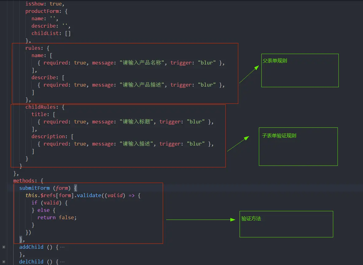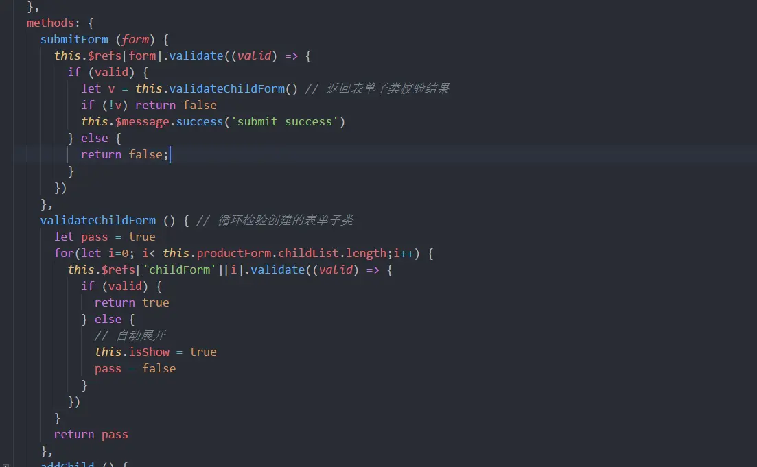 - 可以先自行思考,如果想不明白的可以@我,我将会在后续解答。tips: 此时我们需要子表单的验证方法,childList,childForm参数变成一个可配置的变量即可。