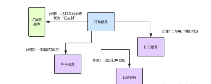用户针对一个订单完成支付之后,就会去找订单服务,更新订单状态