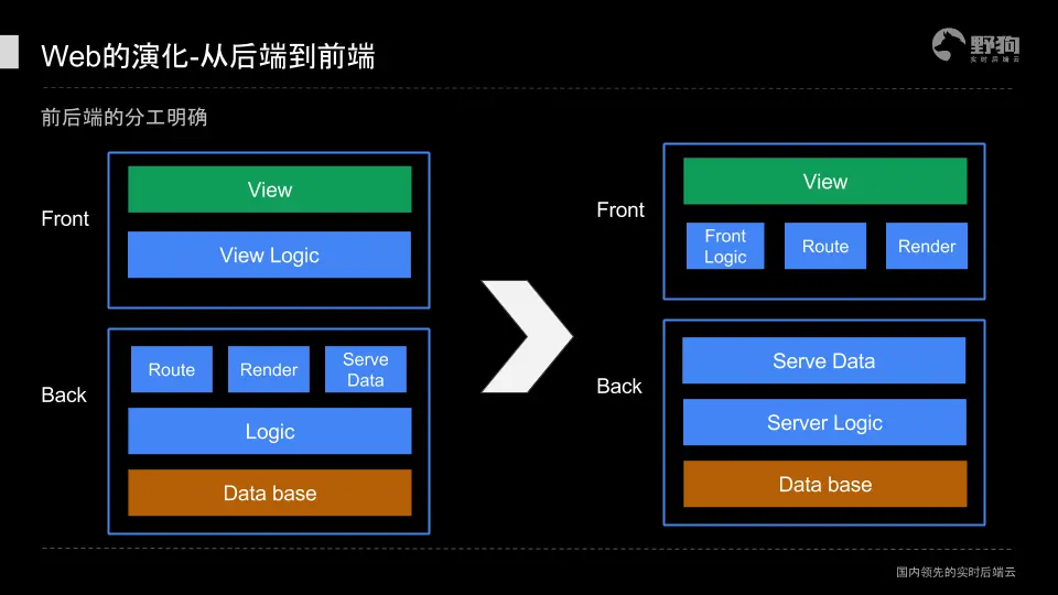 以此同时,JavaScript 经过时间的沉淀,越发凸显了它的强大。所以,在诸多因素之下,就有了前后端的分离: