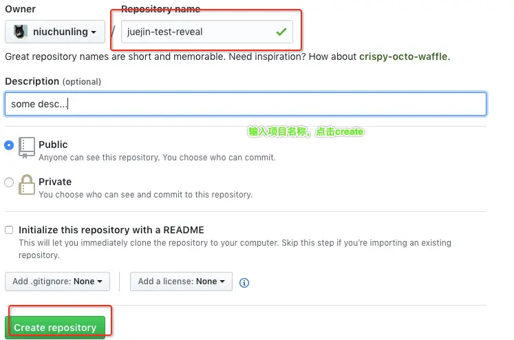 首你需要一个GitHub账号,点击头像旁边小加号-> new repository